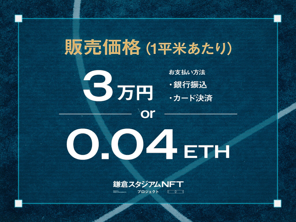 「鎌倉スタジアムNFTプロジェクト」では、ゴールドクレストスタジアム鎌倉のグラウンド(102m x 64m)の合計6528㎡を対象に、6528平米のNFTを発行しています。